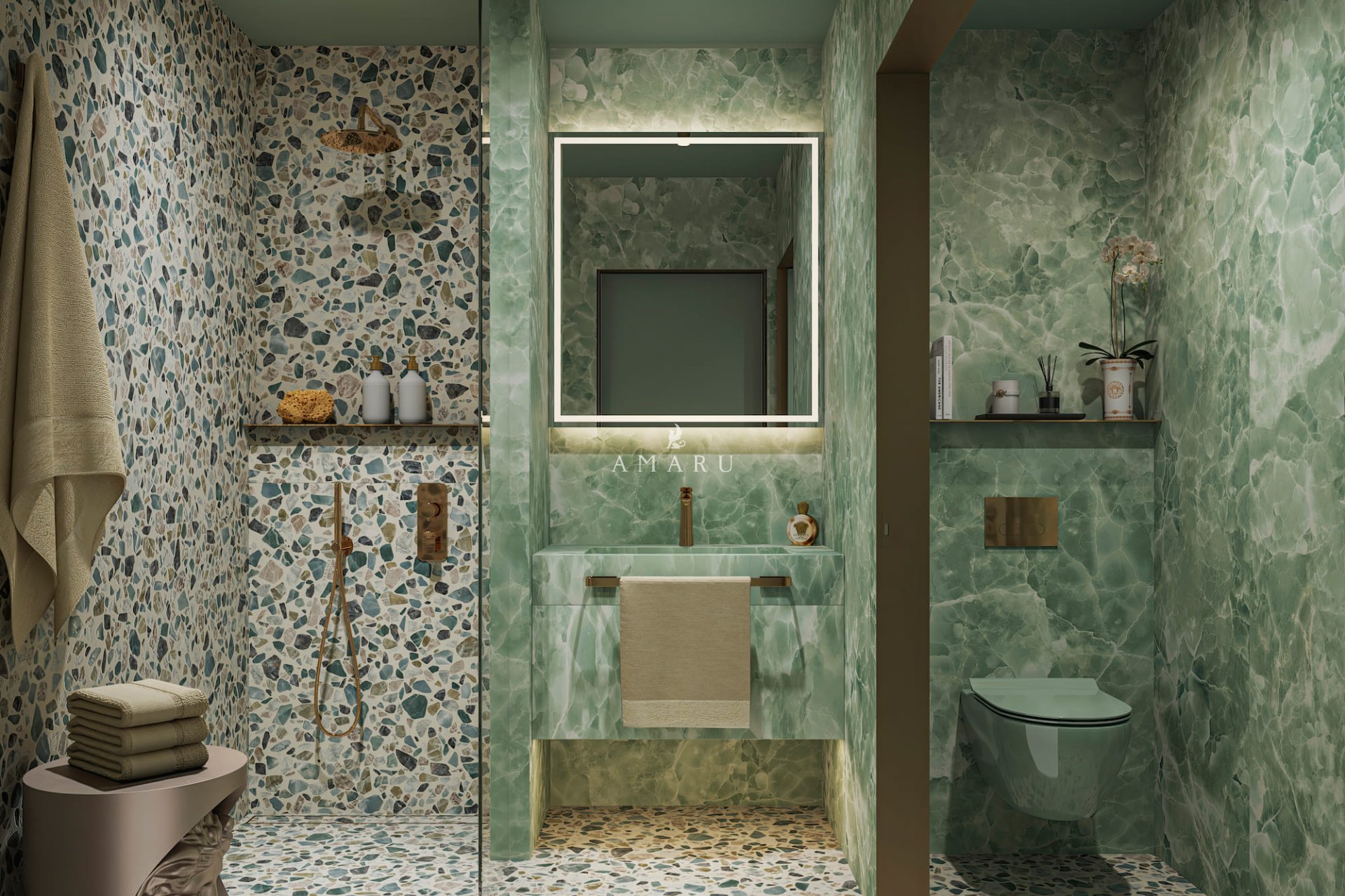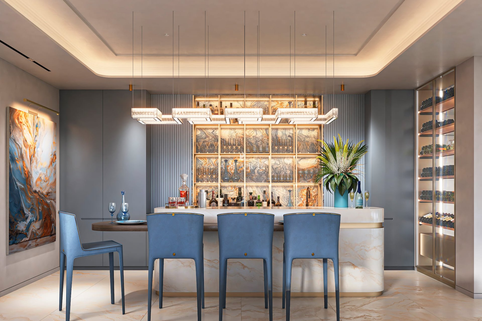 Het interieur van de villa's is ontworpen met het oog op comfort en functionaliteit. Elke villa beschikt over vijf slaapkamers en zes badkamers, wat een ruime en comfortabele ruimte biedt voor het hele gezin. De opname van een domoticasysteem stelt bewoners in staat om verschillende aspecten van het huis efficiënt en modern te beheren. De ingebouwde kasten in de slaapkamers bieden praktische en elegante opslag. Bovendien heeft elke villa een garage, wat voldoende ruimte biedt voor voertuigen en extra opslag.